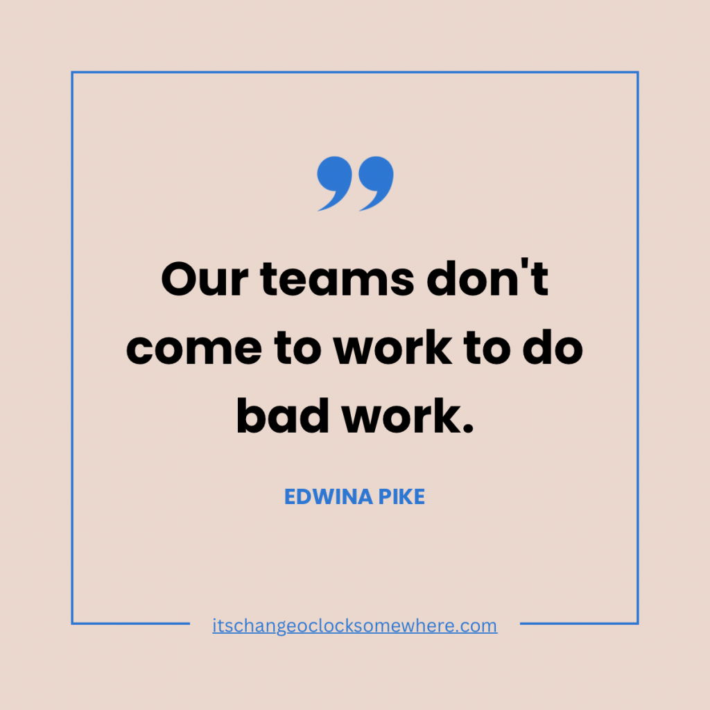 Our teams don’t come to work to do bad work. They want to be a valued member of their team. It is rarely them, it is normally us, as their leader.
